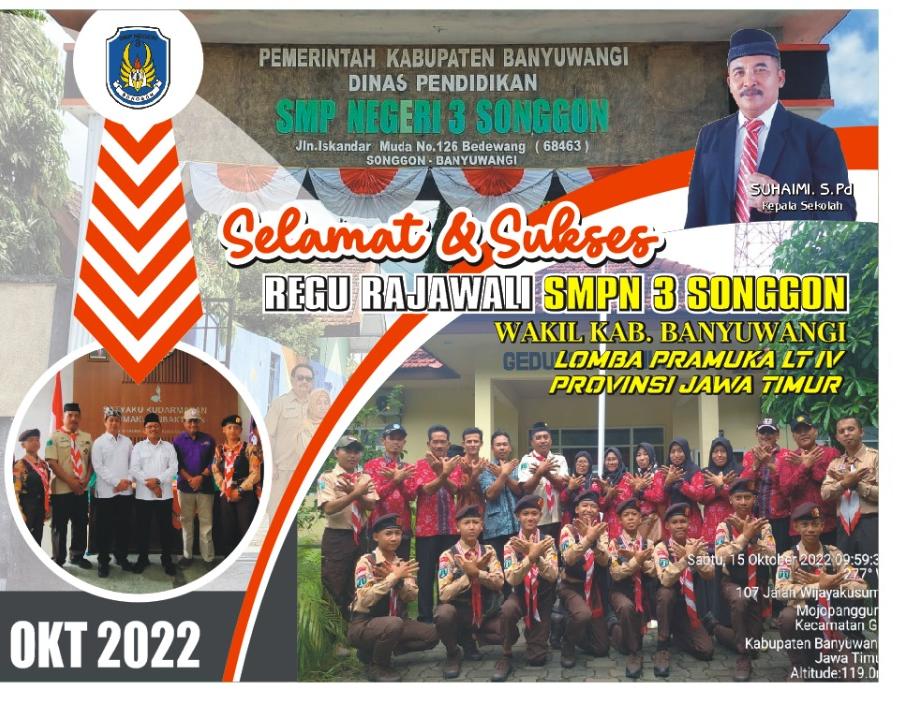 Mohon do'a dan dukungannya buat Peserta Kontingen Banyuwangi LT-IV Pramuka Penggalang SMP Negeri 3 Songgon yang sedang berlaga di Bumi Perkemahan Cobanrondo Malang 18 sampai 22 Oktober 2022.